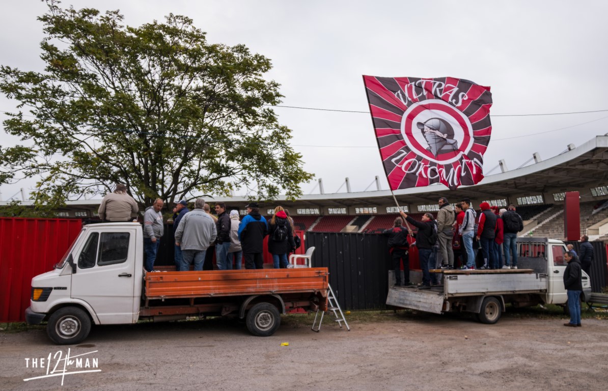 Suddenly standing in the back of a pack-up on a grew Sunday afternoon somewhere in a Sofia suburb. Well standing? Because of ten fanatics jumping up and down, is was more dancing. For sure it does need an extra MOT later on because of broken springs. Nothing stopped these guys from supporting their team today.