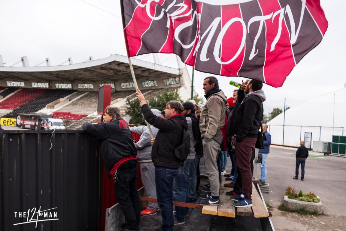 Loko is almost at the bottom of the table. Todays’opponent Kariana can be found one place lowe at second-last. A true six pointer. The football itself, as I am used to at the Balkans, is aweful to watch. But the fanatism of the oldtimers and ultras is just magnificent.